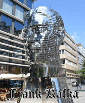 David Cerny has created this tall mobile art. The head is made of mobile layers of metal that once aligned and represents the famous Czech writer Franz Kafka.
