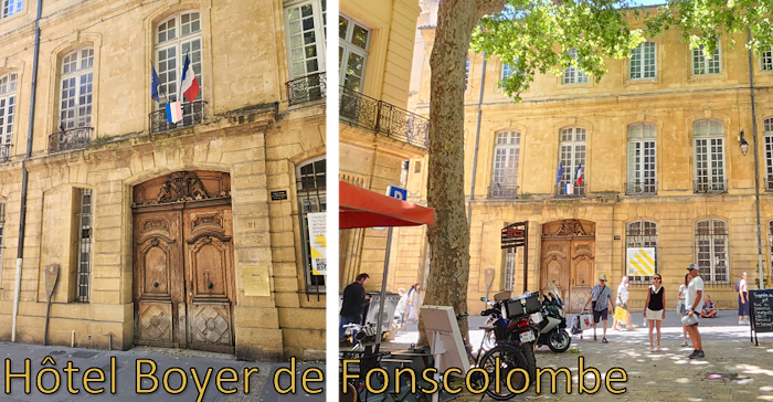 Located at 21 rue Gaston-de-Saporta in the historic center of Aix-en-Provence, the Hôtel Boyer de Fonscolombe is a listed private mansion (hôtel particulier) dating from the 17th century. It is also known as the Hôtel de Saporta or Hôtel de Vitrolles, reflecting the prominent families who successively occupied the building.